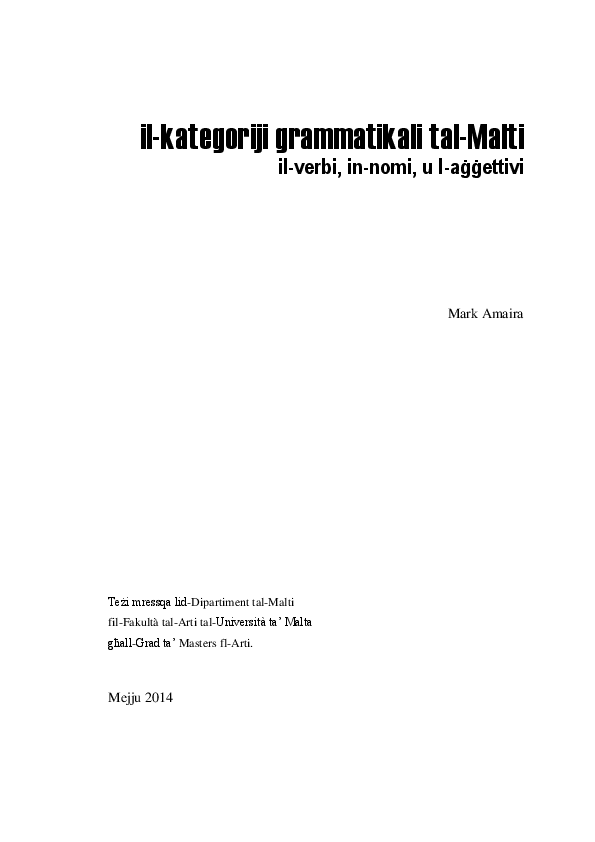 Pdf The Grammatical Categories Of Maltese Verbs Nouns Adjectives Mark Amaira Academia Edu
