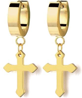 2 Croce Orecchini A Cerchio Orecchini Da Uomo Donna Acciaio Inossidabile Amazon It Gioielli