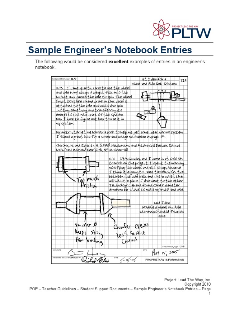 Pltw Engineering Notebook Example