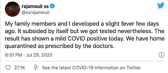 Ss Rajamouli Family Test Positive For Covid 19