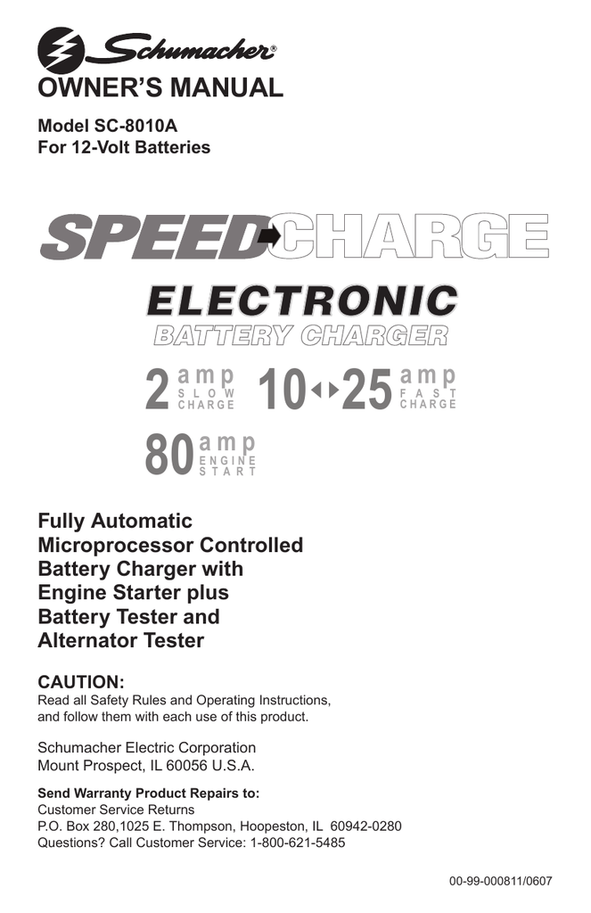 Schumacher Electric Sc 8010a Owner S Manual Manualzz